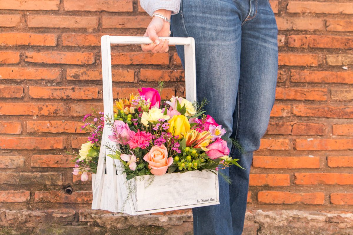 Canasta rústica con flores coloridas