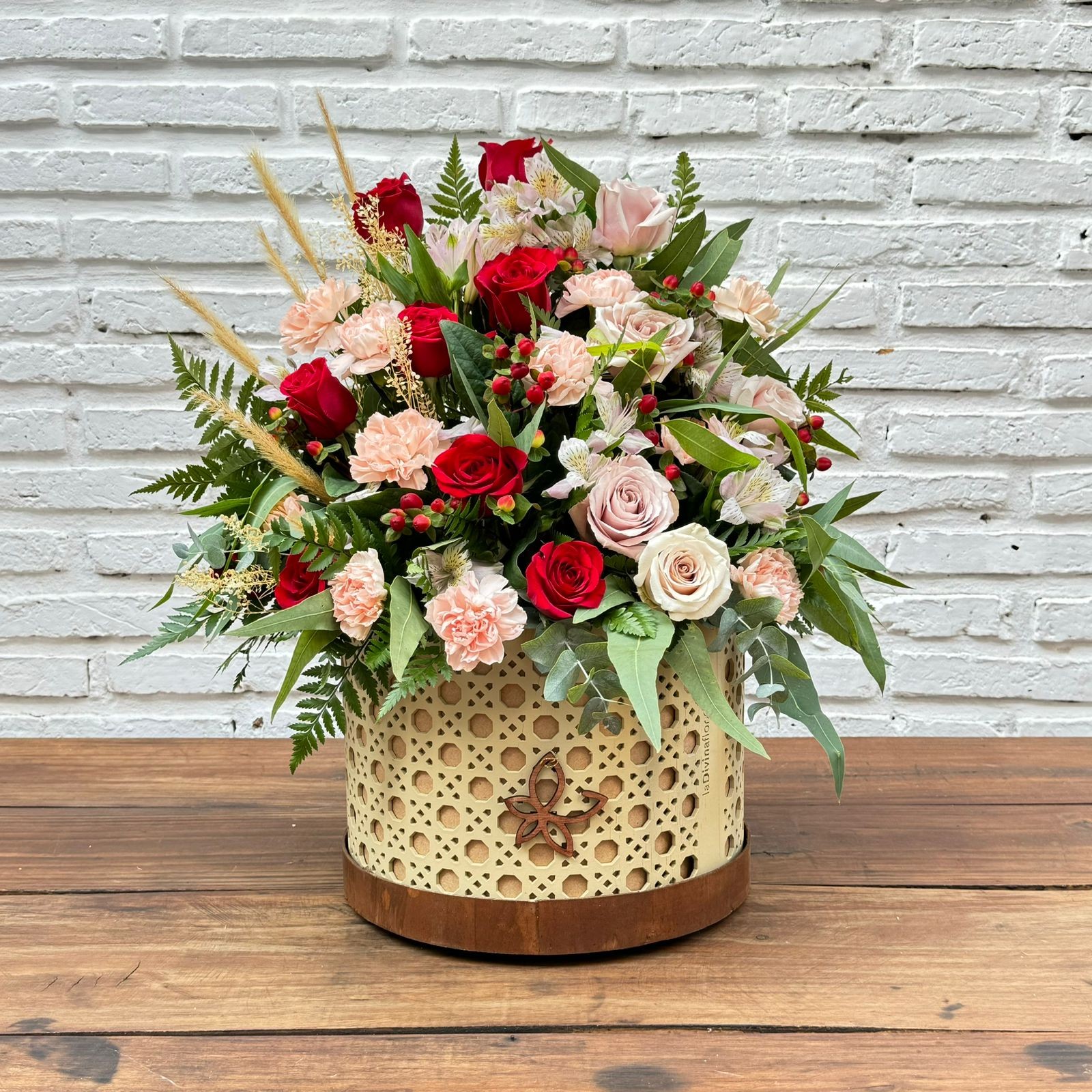 CAJA SIMIL RATTAN CON FLORES COLORIDAS
